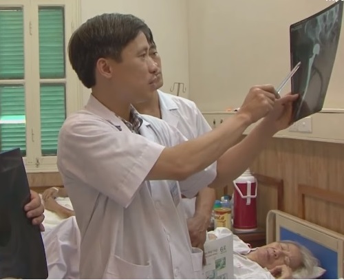 | PGS.TS Nguyễn Mạnh Khánh, Phó viện trưởng Viện Chấn thương chỉnh hình, Bv Việt Đức đang khám cho bệnh nhân. |
