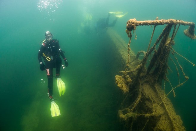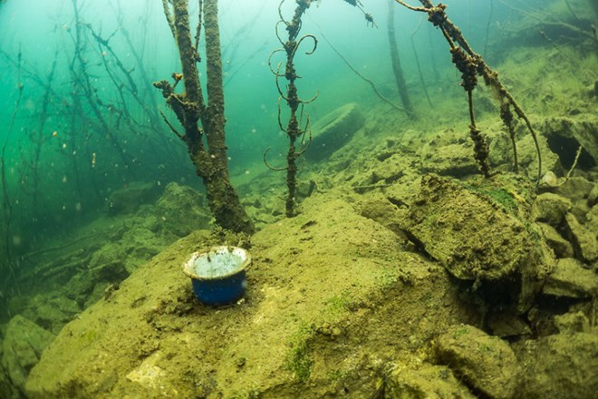 Rong rêu bám đầy xung quanh và còn nhiều vật dụng cũ chìm sâu dưới nước. Độ sâu ở đây ít nhất lên tới 13 mét nhưng các thợ lặn chỉ xuống ở mức 6-9 mét.