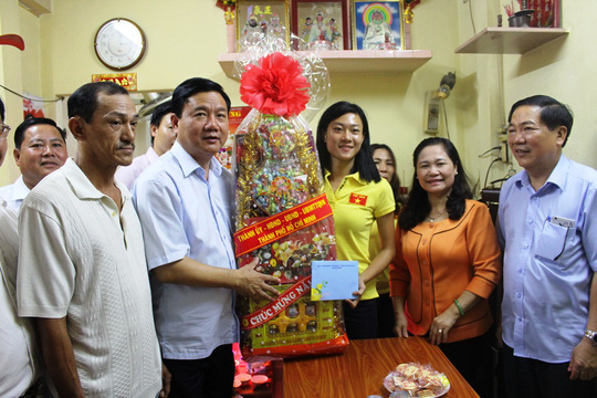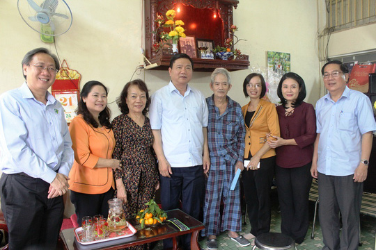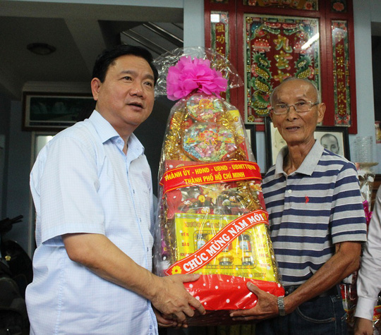 Chiều 21/1, Bí thư Thành uỷ TP HCM Đinh La Thăng dẫn đầu đoàn đại biểu TP thăm và chúc Tết ông Hoàng Ngọc Thương (quận 10), cán bộ lão thành cách mạng.