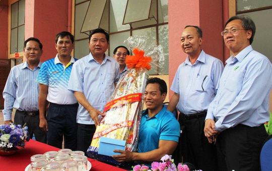 Tặng phần quà Xuân của TP, Bí thư Đinh La Thăng một lần nữa chúc mừng và biểu dương thành tích tuyệt vời mà vận động viên Lê Văn Công đã đạt được; bày tỏ sự khâm phục bản lĩnh, ý chí vượt khó vươn lên của vận động viên Lê Văn Công và các đồng nghiệp khuyết tật đang tập luyện tại trung tâm.