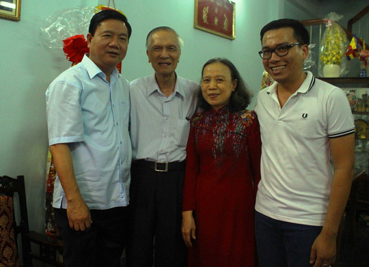 Bí thư Đinh La Thăng (ngồi, thứ hai từ trái sang) thăm và chúc Tết ông Hoàng Ngọc Thương. Ảnh: Bảo Ngọc
