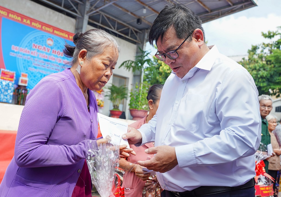 Thay mặt lãnh đạo Thành phố, Bí thư Nguyễn Văn Nên trao quà, kinh phí hỗ trợ công tác khuyến học đến học sinh vượt khó, học giỏi tại Ấp 5.