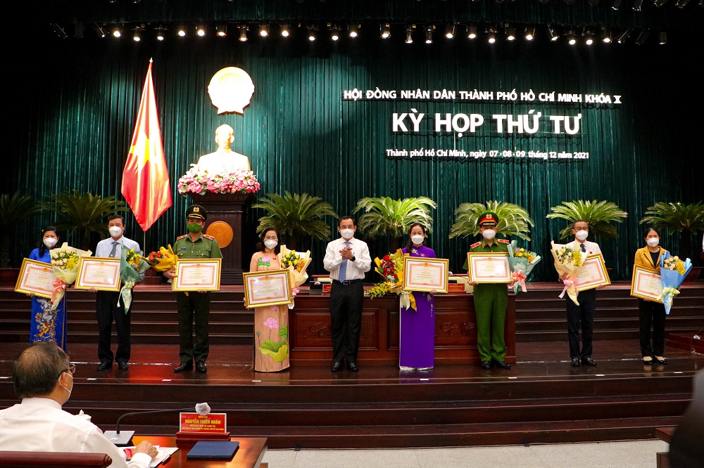Tại kỳ họp, đ/c Nguyễn Văn Nên - Ủy viên Bộ Chính trị, Bí thư Thành ủy TP.HCM trao khen thưởng của Thủ tướng cho tập thể, cá nhân đạt thành tích xuất sắc trong công tác bầu cử đại biểu Quốc hội khóa XV và HĐND nhiệm kỳ 2021-2026.
