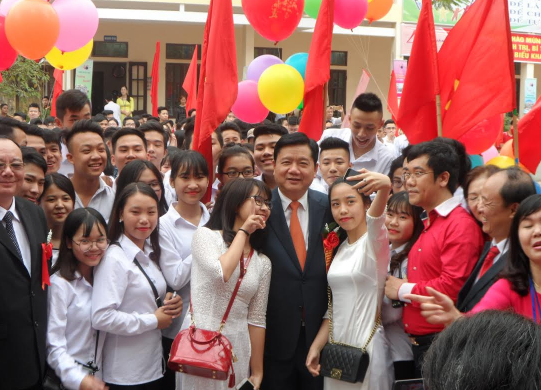 Ông Đinh La Thăng giao lưu với học sinh nhà trường.