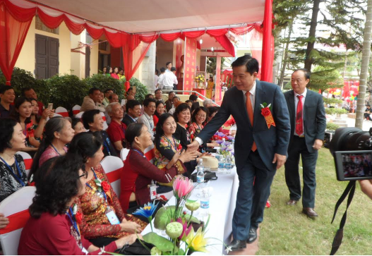 | Bí thư Thành ủy thành phố Hồ Chí Minh Đinh La Thăng chụp ảnh lưu niệm cùng các vị đại biểu về dự lễ. |