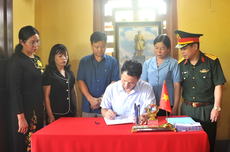 Bí thư Tỉnh ủy Đặng Quốc Khánh ghi sổ vàng truyền thống tại Đền thờ Liệt sỹ điểm cao 468 (Ảnh: Báo Hà Giang)