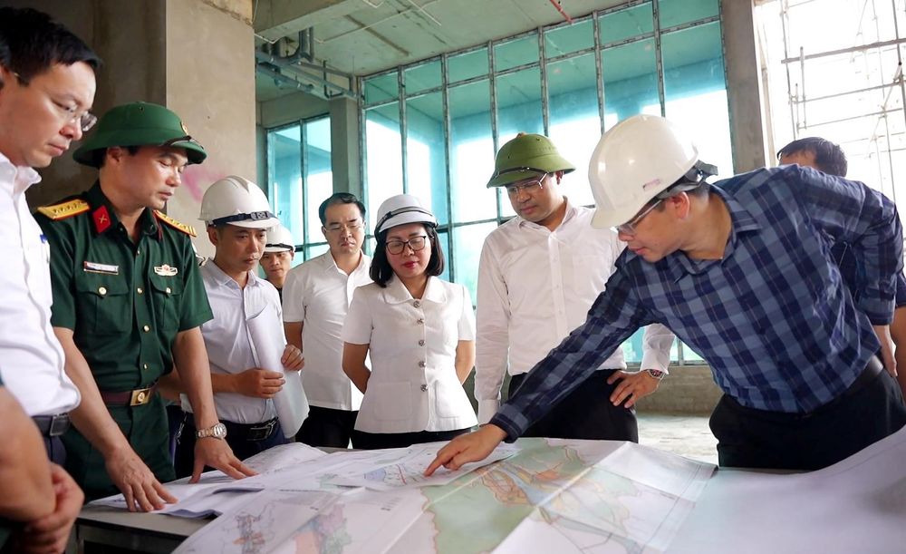Ông Trịnh Xuân Trường - Bí thư Tỉnh ủy và Đoàn công tác kiểm tra trụ sở hành chính xã Bảo Thắng và các cơ quan khu vực đang chuẩn bị hoàn thành.