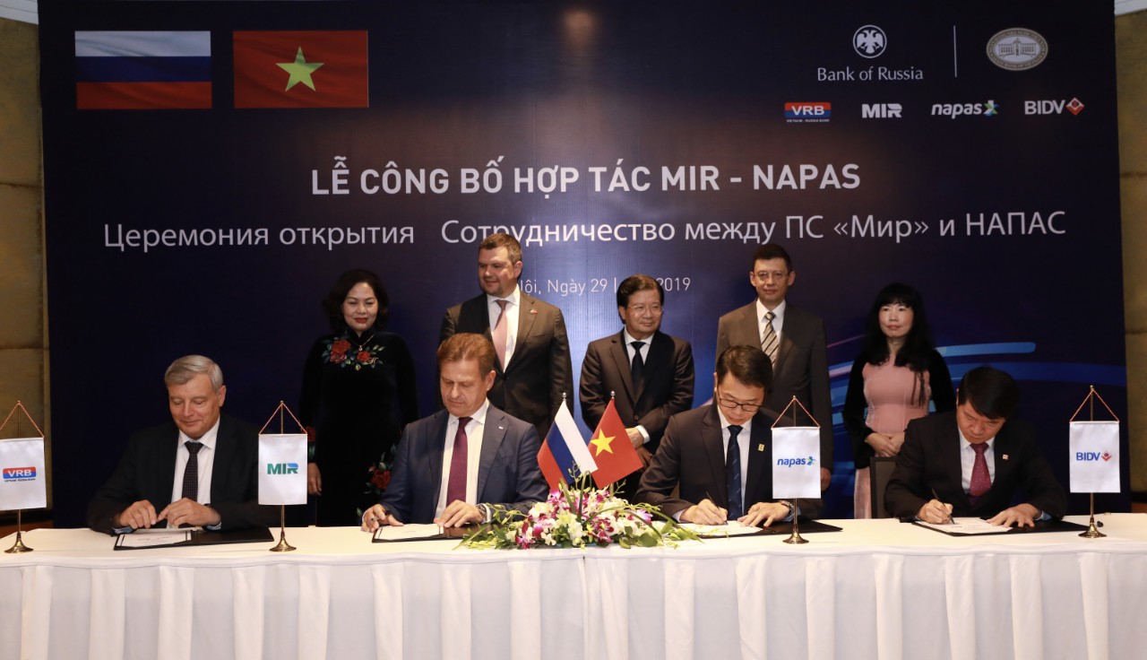 Đồng thời, với sự chứng kiến của Phó Thủ tướng Chính phủ Việt Nam Trịnh Đình Dũng, Phó Thủ tướng Cộng hòa Liên Bang Nga Maxim Akimov, đại diện Ngân hàng Nhà nước Việt Nam, Ngân hàng Trung ương Nga và các quan chức cấp cao của hai nước, BIDV và NAPAS cũng đã ký kết Thỏa thuận triển khai dịch vụ kết nối với Tổ chức thẻ nội địa Liên Bang Nga NSPK. Cho đến nay, BIDV là Ngân hàng đầu tiên và duy nhất cung cấp dịch vụ chấp nhận thanh toán thẻ MIR – thẻ nội địa mang thương hiệu quốc gia của Liên Bang Nga tại hệ thống POS của BIDV trên toàn quốc.