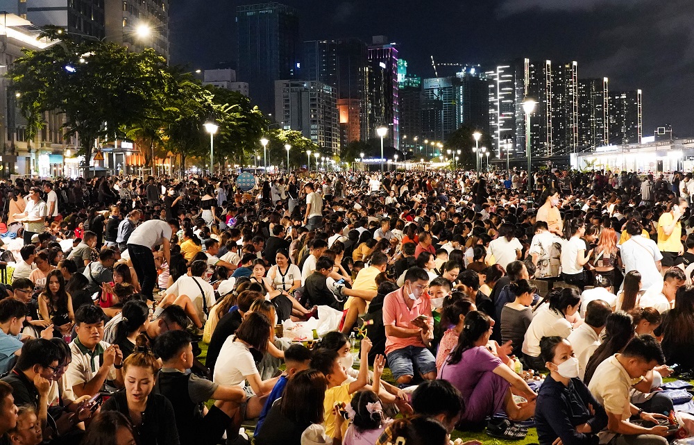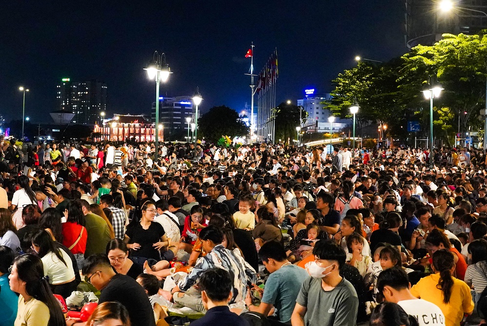 Chào mừng Quốc khánh Việt Nam 2/9 năm nay, TP Hồ Chí Minh tổ chức bắn pháo hoa tầm cao tại đầu hầm sông Sài Gòn (TP Thủ Đức) và pháo hoa tầm thấp tại Công viên văn hóa Đầm Sen (Quận 11). Ghi nhận vào khoảng 20h40, lượng người đổ về bến Bạch Đằng, dọc tuyến đường Tôn Đức Thắng (dọc sông Sài Gòn) để xem pháo hoa ngày một nhiều. Khoảng 21h kém, gần như toàn công viên bến Bạch Đằng chật kín người.