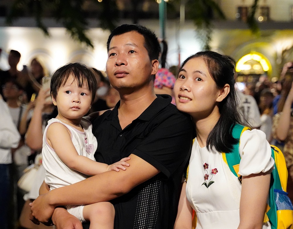 Nhiều em nhỏ phấn khích khi xem pháo hoa tầm cao cùng gia đình.
