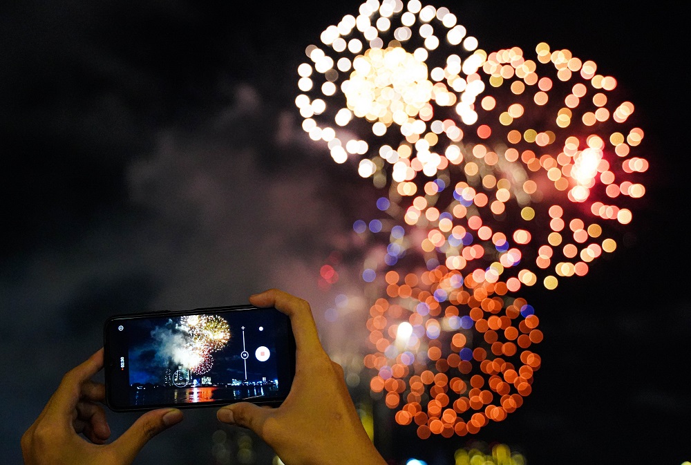 Sau chương trình biểu diễn văn hóa nghệ thuật tại Phố đi bộ Nguyễn Huệ, thì màn bắn pháo hoa tầm cao, kéo dài 15 phút tại đầu hầm sông Sài Gòn (TP Thủ Đức) được xem tâm điểm thu hút người dân và du khách.