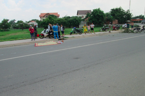 giữa xe tải và xe máy khiến một cụ già tử vong tại chỗ.