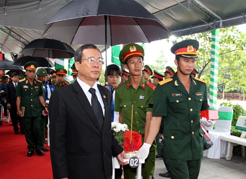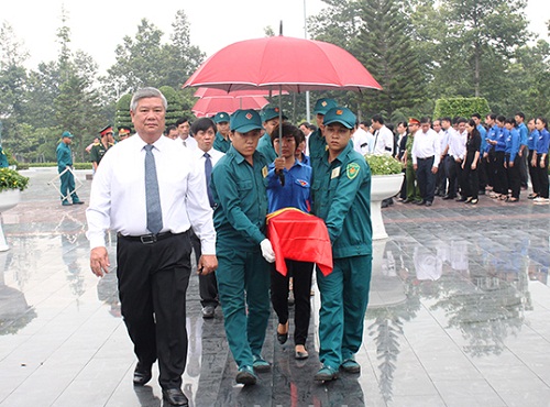 Lãnh đạo tỉnh Bình Dương cùng đưa hài cốt liệt sỹ về nơi an táng tại nghĩa trang