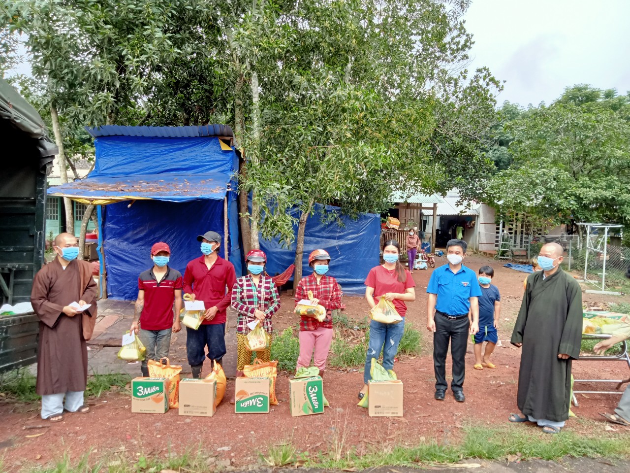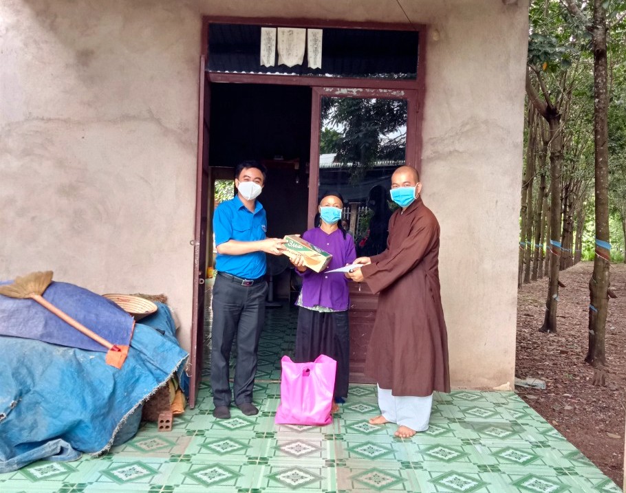 Theo Bí thư Tỉnh Đoàn Bình Phước Trần Quốc Duy, đoàn công tác đã đến tận nhà để thăm và động viên 3 Phật tử ngụ tại ấp cầu 2, xã Đồng Tiến đang gặp nhiều nỗi khó trong thời gian giãn cách xã hội. Tại đây, những suất quà trị giá 600 nghìn đồng/suất mang đầy tình yêu thương và nhiều lời hỏi han, khích lệ đã được gửi đến cho các hoàn cảnh khó khăn.