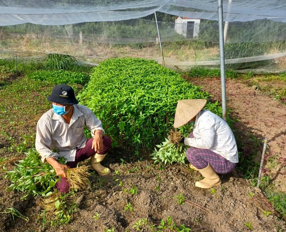Trong tiết trời oi bức của mùa hè, một số người dân Bình Phước nhanh tay hái rau xanh để gửi tặng Sài Gòn.