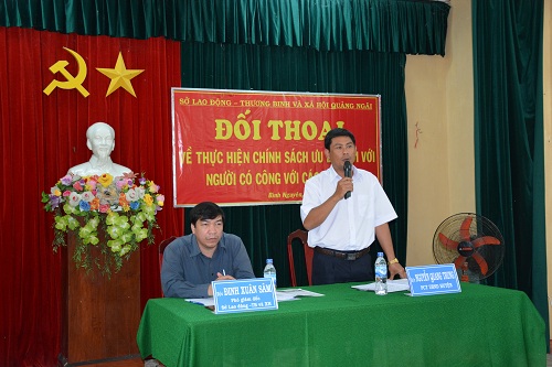 Tại buổi đối thoại, Sở LĐ-TB&XH đã báo cáo, trao đổi một số nội dung liên quan đến việc xác nhận, thực hiện chính sách NCC của huyện Bình Sơn và đặc biệt là các đối tượng chính sách của 2 xã Bình Nguyên và Bình Chánh trực tiếp tham gia tại buổi đối thoại.
