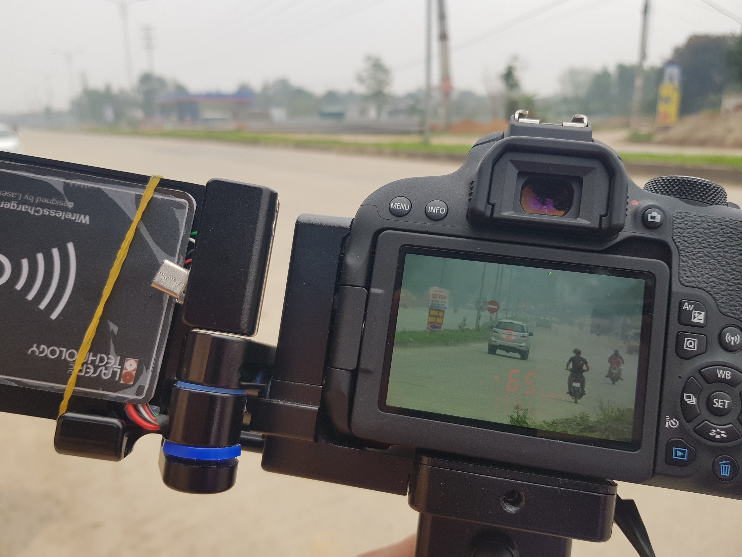 Quá trình làm nhiệm vụ, ngoài lực lượng công khai cắm chốt trên đường, tổ công tác của Đội CSGT - TT Công an huyện Bình Xuyên đã bố trí một chiến sĩ CSGT sử dụng thiết bị chuyên dụng đo tốc độ các phương tiện lưu thông trên đường. Từ thông tin thiết bị đo được, các trường hợp vi phạm sẽ được gửi về chốt kiểm soát của CSGT trên đường để tiến hành dừng xe, xử phạt các tài xế chạy quá tốc độ.