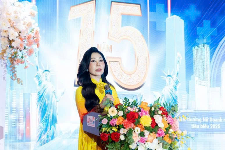 Bà Lại Thị Thu Hà - Giám đốc Marketing BNC Medipharm, Hoa hậu Đại sứ Doanh nhân Hòa bình Toàn cầu 2025 phát biểu khai mạc tại Lễ kỷ niệm.