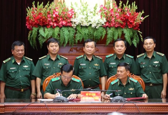 | Lãnh đạo Bộ Tư lệnh Bộ đội Biên phòng và Bộ Tham mưu Bộ đội Biên phòng chứng kiến Thiếu tướng Nguyễn Văn Nam và Thiếu tướng Lê Đức Thái ký Biên bản bàn giao. |