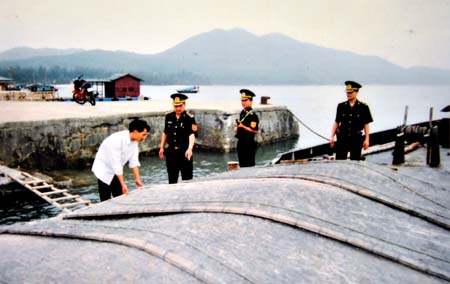 Đội KSHC Bộ đội Biên phòng đảo Cô Tô tuần tra, kiểm soát các phương tiện tại cảng Đồng Hồ.