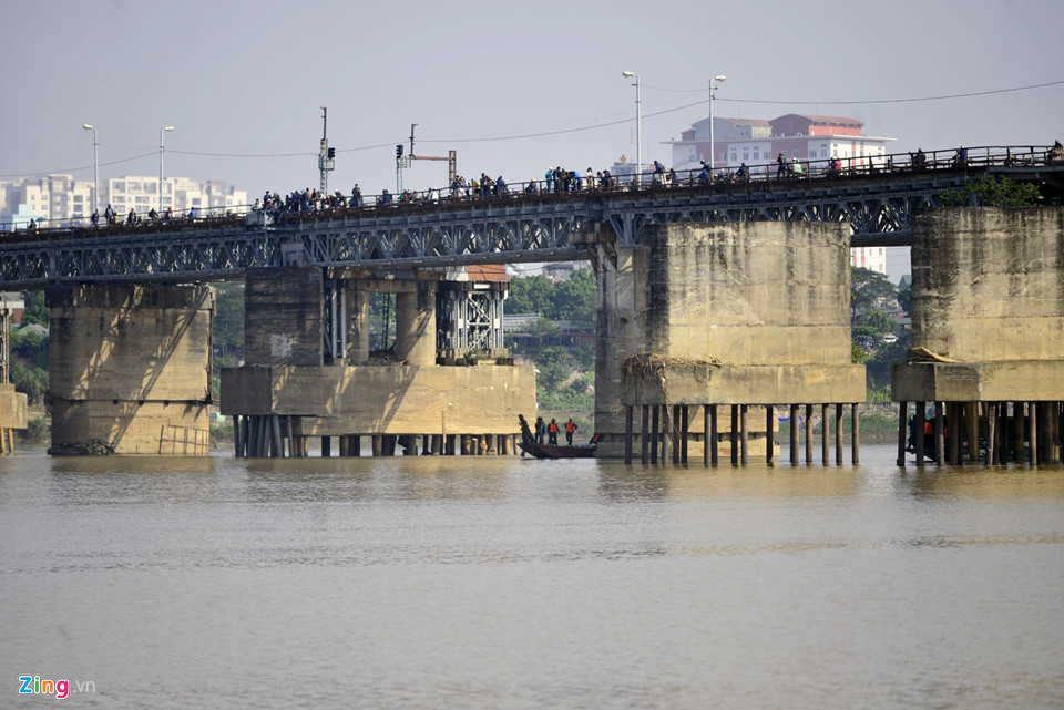 Chiều 28/11, lực lượng chức năng trục chuẩn bị công tác vớt quả bom gần trụ P13 cầu Long Biên để đưa đi xử lý. Lúc này giao thông trên cầu vẫn hoạt động bình thường, riêng đường thủy được phong tỏa, cấm tàu thuyền qua lại.