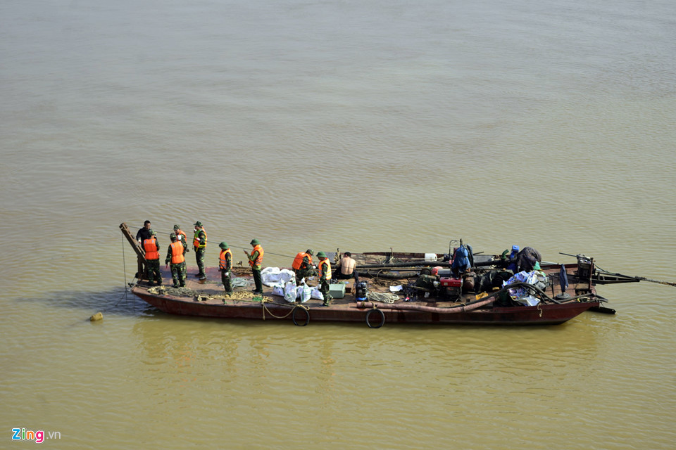 Trong lúc đang trục với bom, trên sông xuất hiện một chiếc thuyền chài tiến tới vị trí cầu Long Biên. Ngay lập tức cảnh sát đường thủy đã tiếp cận yêu cầu chiếc thuyền quay lại. Trước đó từ 12h30, lực lượng chức năng đã cấm các phương tiện đường thủy lưu thông qua đây.