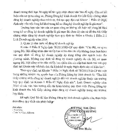 Đề nghị Quý Sở chỉ đạo Phòng Đăng ký kinh doanh nghiên cứu, thực hiện theo đúng quy định của pháp luật.”