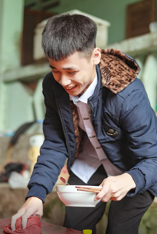 Cứ 6h sáng hàng ngày, em tập tễnh đôi chân đến quán gần trường kê lại bàn ghế, dọn dẹp rồi mới đi học. "Lương" của em là ngày 3 bữa cơm no, đối với em chỉ cần như vậy.