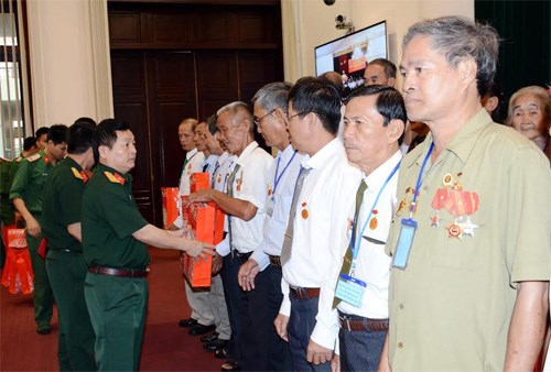 Thừa ủy quyền của thủ trưởng Bộ Quốc phòng, Tổng cục Chính trị, lãnh đạo Cục Chính sách tặng quà cho NCC TP Cần Thơ.