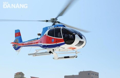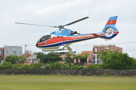 Chiếc máy bay EC 130-T2 số hiệu 8632 của Tổng Công ty trực thăng Việt Nam trong một lần bay. (Ảnh: T.L)