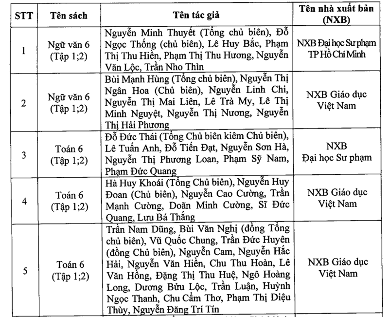 SGK lớp 2, lớp 6 được Hà Nội phê duyệt thuộc nhiều bộ của các Nhà xuất bản: Giáo dục Việt Nam, Sư phạm Hà Nội, Sư phạm TP. HCM, Đại học Quốc gia TP HCM.