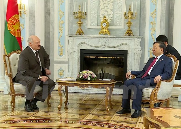 Bộ trưởng Tô Lâm chân thành cảm ơn Tổng thống Aleksandr Lukashenko đã dành thời gian tiếp Đoàn; chuyển lời chào trân trọng và lời chúc sức khỏe của Tổng Bí thư Nguyễn Phú Trọng, Chủ tịch Nước Trần Đại Quang đến ngài Tổng thống cùng gia đình.