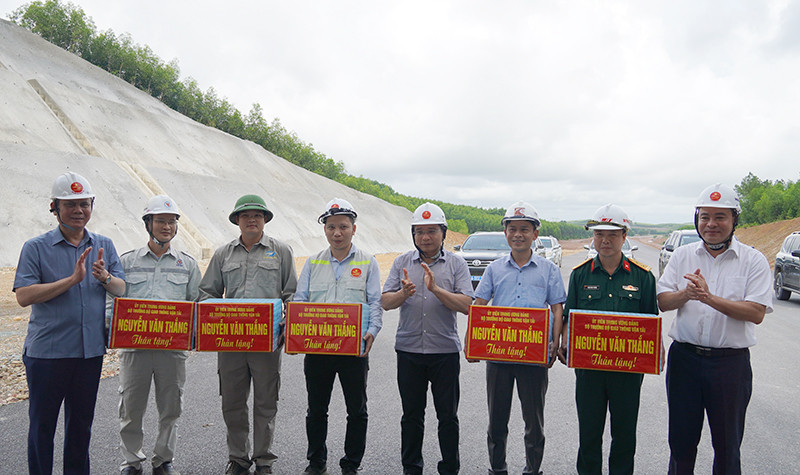 Bộ trưởng Bộ GTVT Nguyễn Văn Thắng tặng quà các đơn vị thi công dự án thành phần Vạn Ninh -Cam Lộ