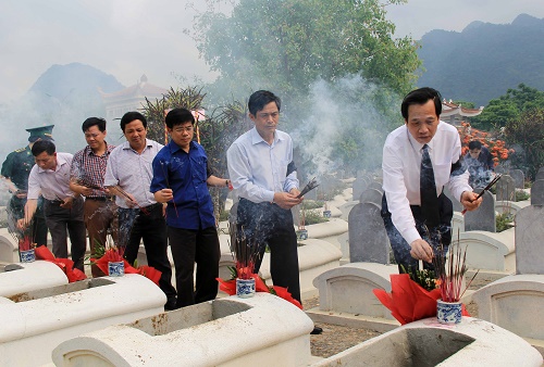 Bộ trưởng Đào Ngọc Dung (ngoài cùng, tay phải) thắp hương tưởng niệm các liệt sỹ