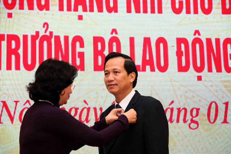 Chiều ngày 23/1, tại Hà Nội, Bộ LĐ-TB&XH tổ chức Hội nghị đại biểu cán bộ, công chức, viên chức năm 2017. Tại Hội nghị, Phó chủ tịch nước Đặng Thị Ngọc Thịnh trao tặng Huân chương Lao động hạng Nhì cho Bộ trưởng Bộ LĐ-TB&XH Đào Ngọc Dung. Tham dự Hội nghị có các Thứ trưởng: Đào Hồng Lan, Lê Tấn Dũng, Lê Quân.