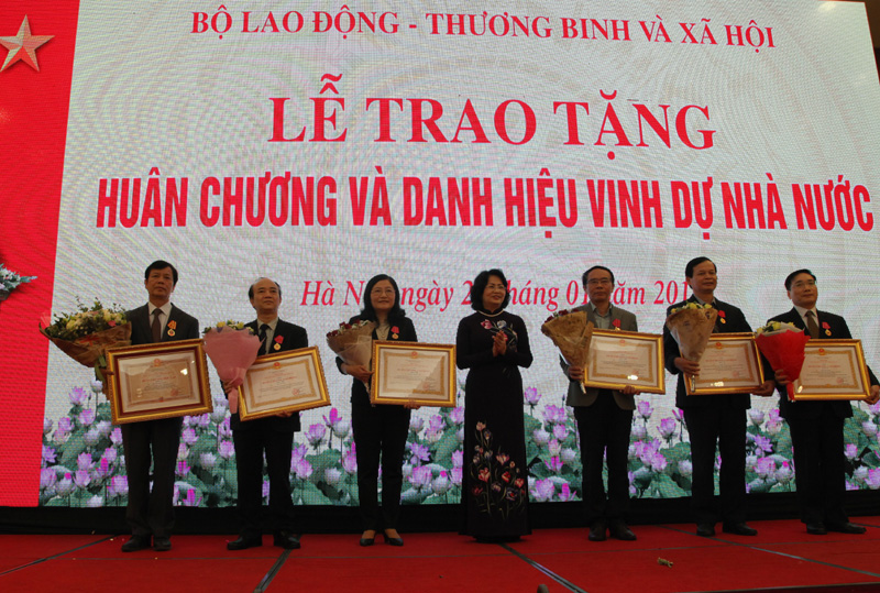 Tại Hội nghị, Phó chủ tịch nước đã tặng thưởng Huân chương độc lập hạng Ba cho nguyên Thứ trưởng Bộ LĐ-TB&XH Nguyễn trọng Đàm; Huân chương lao động hạng Nhì cho ông Cao Văn Sâm, nguyên Phó Tổng Cục trưởng Tổng cục Giáo dục nghề nghiệp; bà Mai Thúy Nga, nguyên Phó Tổng cục trưởng Tổng cục Giáo dục nghề nghiệp; Bà Nguyễn Thị Hải Vân – nguyên Cục trưởng cục Việc làm; ông Cao Quang Đại – Vụ trưởng Vụ Kỹ năng nghề, Tổng cục GDNN; Ông Tạ Đức Huy, Phó Vụ trưởng Vụ Giáo viên và Cán bộ quản lý dạy nghề, TC GDNN; Ông Đinh Tiến Dũng, Phó Vụ trưởng Vụ Kỹ năng nghề, Tổng cục GDNN; Phong tặng Danh hiệu Nhà giáo ưu tú cho TS. Nguyễn Xuân Hùng, Viện trưởng Viện nghiên cứu Khoa học dạy nghề, Tổng cục GDNN; TS Đặng Xuân Thức, Vụ trưởng Vụ Tổ chức cán bộ (nguyên vụ trưởng vụ Dạy nghề chính quy), Tổng cục GDNN.