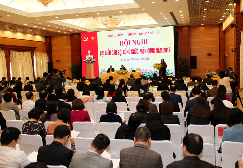Báo cáo, tổng kết phong trào thi đua, công tác khen thưởng năm 2017, Chủ tịch Công Đoàn Bộ, Đào Ngọc Thịnh cho biết, Với phương châm chỉ đạo “Đoàn kết - kỷ cương - sáng tạo - hiệu quả”, năm 2017 Bộ đã tập trung vào các nhiệm vụ trọng tâm trong từng lĩnh vực; sâu sát, cụ thể đến từng khâu, từng công đoạn, từng địa bàn, từng đối tượng; đặc biệt tập trung cho các khâu đột phá về hoàn thiện thể chế, thực hiện chính sách ưu đãi người có công, nâng cao chất lượng giáo dục nghề nghiệp và cải cách hành chính. Hoạt động các phong trào thi đua, khen thưởng trong cán bộ, công chức, viên chức luôn nhận được sự quan tâm, chỉ đạo, lãnh đạo của Ban cán sự, Đảng uỷ Bộ, Ban Thường vụ Công đoàn Viên chức Việt Nam, đây là những thuận lợi cơ bản để Bộ và Công đoàn Bộ tiếp tục đẩy mạnh phong trào thi đua xây dựng cơ quan, đơn vị và tổ chức công đoàn vững mạnh.