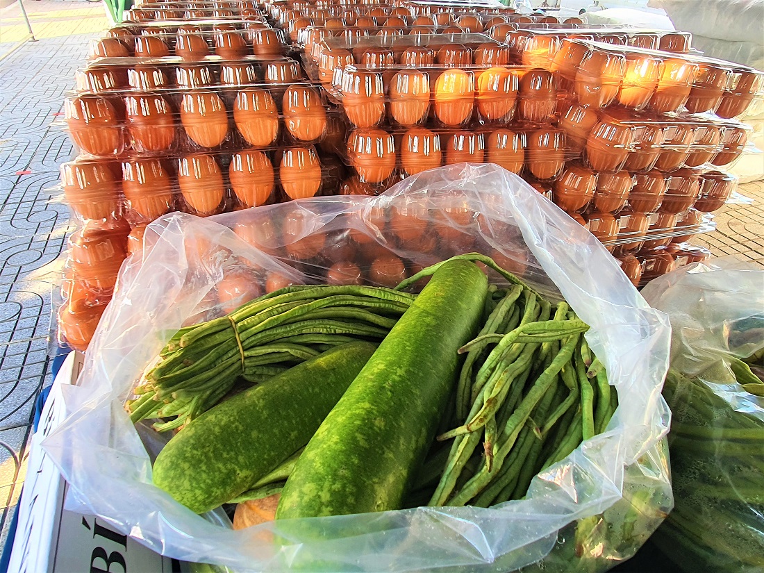 Các loại rau, củ, quả (bầu, bí, cải, đậu đũa...) đều là sản phẩm do cán bộ, chiến sĩ trực thuộc Quân khu 7 tăng gia sản xuất.