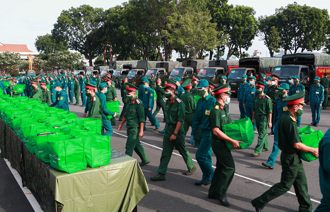 Từ sáng sớm tại, tại Sở chỉ huy quân sự Bộ Tư lệnh TP.HCM, các phần quà bao gồm lương thực và nhu yếu phẩm thiết yếu được các chiến sĩ chuẩn bị tươm tất. Lực lượng cơ giới thuộc Ban chỉ huy quân sự TP Thủ Đức và các quận huyện cũng có mặt để tiếp nhận các phần quà, nhanh chóng vận chuyển, trao tặng kịp thời đến tay người dân khó khăn ở từng địa phương.