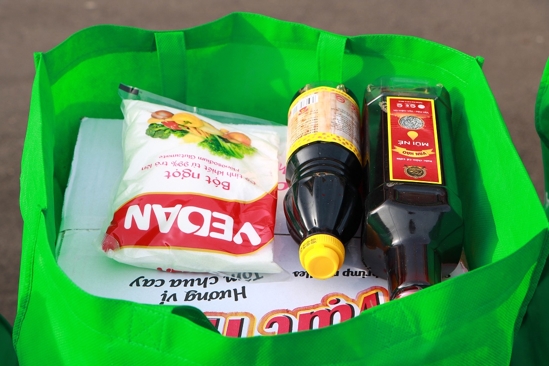Từng phần quà được chuẩn bị đầy đủ, đóng gói cẩn thận để trao tận tai người dân khó khăn, người bị ảnh hưởng bởi dịch bệnh COVID-19.