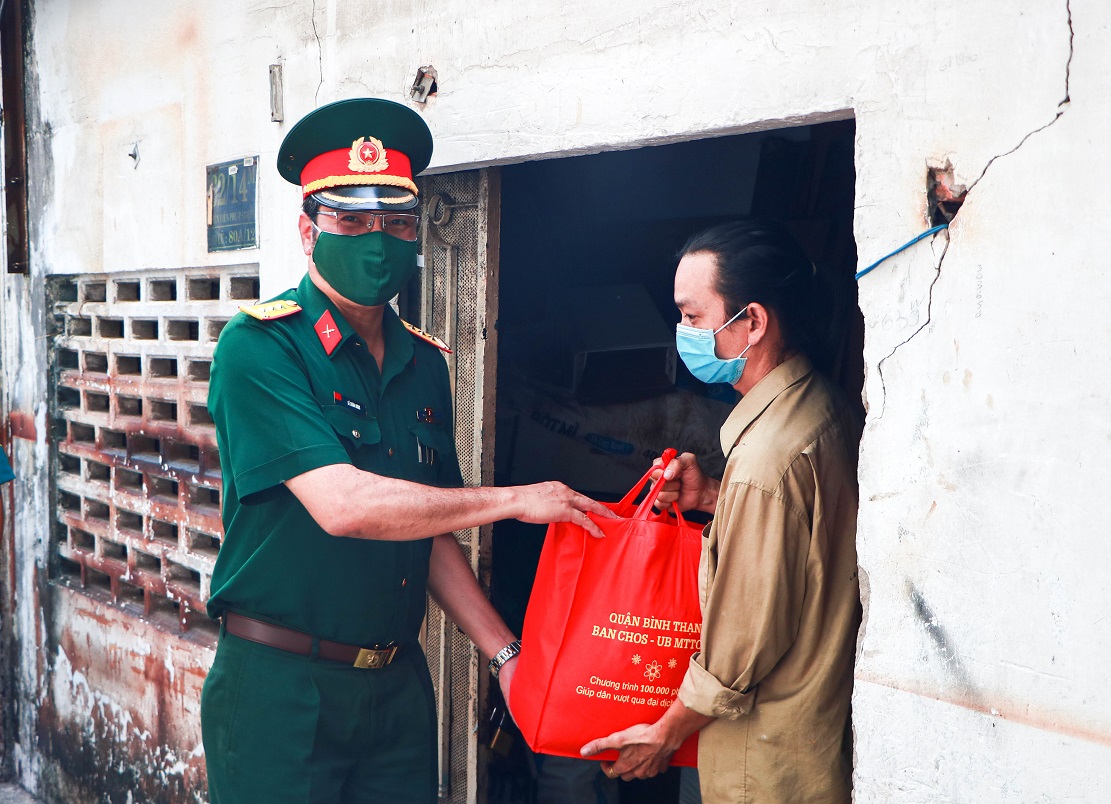 Ghi nhận của phóng viên, vào trưa ngày 8/8, tại Phường 17, quận Bình Thạnh (TP.HCM), đại diện Ban chỉ huy Quân sự quận Bình Thạnh phối hợp cùng chính quyền địa phương đến từng nhà, trao tận tay từng phần quà đến người già neo đơn, người thất nghiệp bị ảnh hưởng bởi dịch bệnh trên địa bàn. Nhiều người không khỏi vui mừng khi nhận được các phần quà đầy ý nghĩa này.