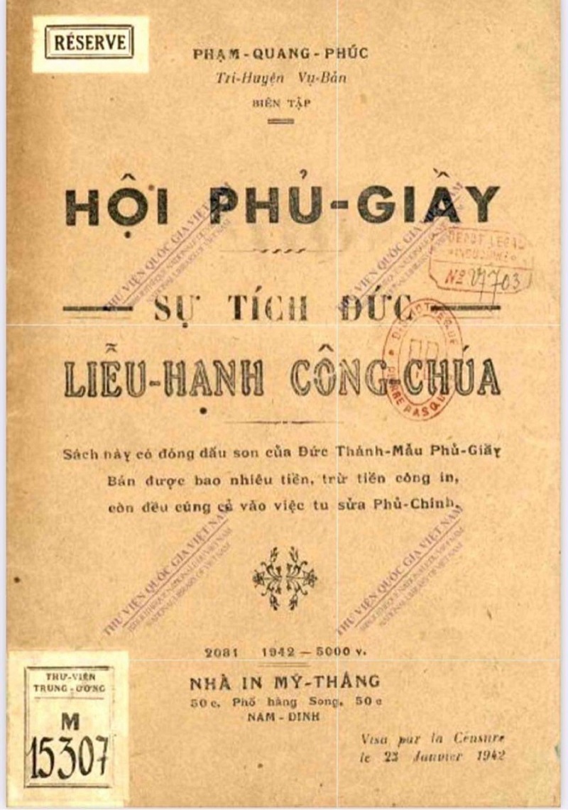 Tài liệu lịch sử thời xa xưa về “Hội Phủ-Giầy Sự Tích Đức Liễu-Hạnh Công-Chúa”