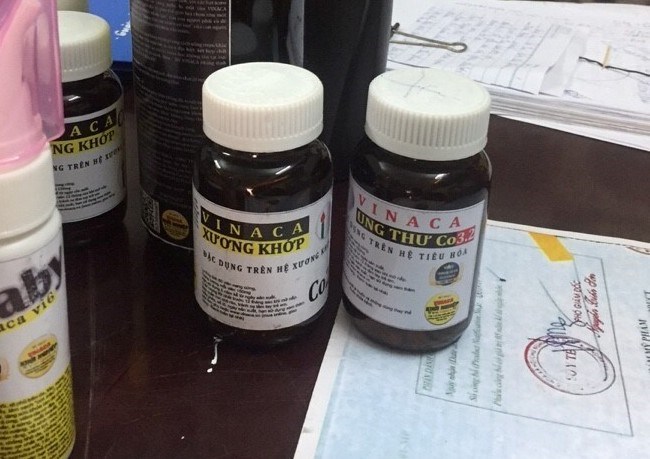 Các sản phẩm được dán nhãn, đóng gói gồm: Vinaca Vi5, Vinaca ung thư CO3.2, Baby Vinaca Vi6, Vinaca Activated Carbon đa dụng, Vinaca vi lượng (nhỏ mũi), Vinaca đa dụng và một số chất bột cùng chất lỏng không nhãn mác khác.