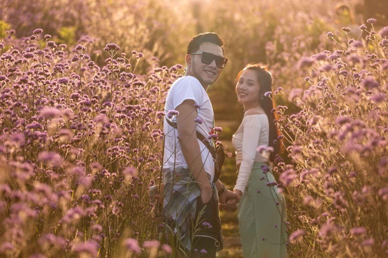 Mùa hồng leo ở Sun World Fansipan Legend cũng là mua hoa mã tiền thảo tím biếc. Suốt từ khu vực ga đến tàu hoả Mường Hoa cho tới lối vào ga đi Cáp treo từ cổng chính của khu du lịch, những triền hoa mã tiền thảo đẹp lãng mạn như áng mây tím bồng bềnh "hạ cánh" nơi đây. Từ hai năm nay, những đồi hoa tím của Sun World Fansipan Legend đã trở thành một hiện tượng, một xu thế nhuộm tím những bức hình check-in Fansipan trên mạng xã hội.