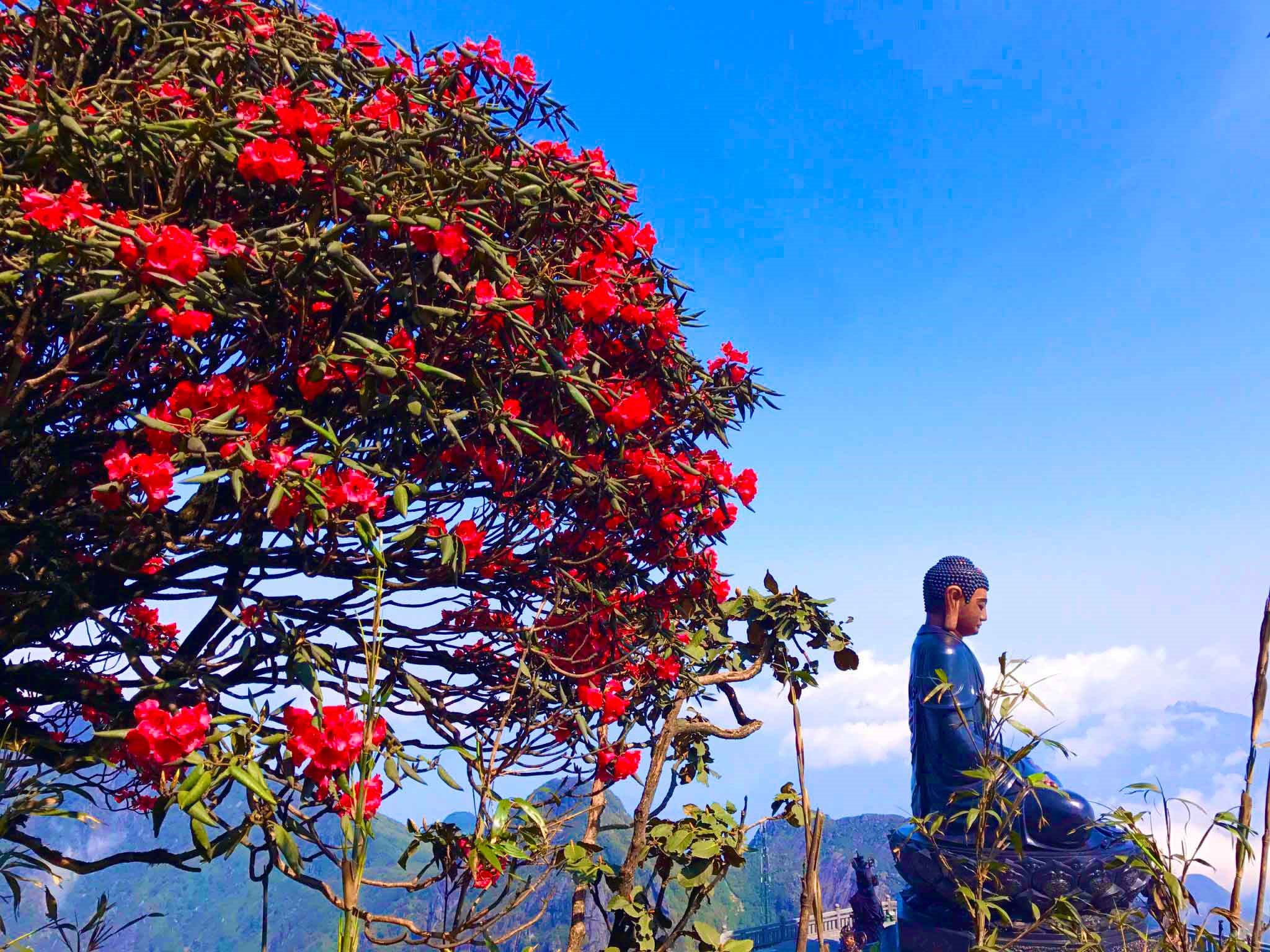 Xuân cũng là thời điểm "nữ hoàng của núi rừng Fansipan" là đỗ quyên bừng tỉnh, thêu lên đại ngàn xanh thẫm những mảng màu tinh xảo, khi rực đỏ, khi tím biếc, khi lại sáng lên màu vàng non hay trắng thuần khiết... Không có bức ảnh nào hay tính từ nào có thể lột tả được chuẩn nhất của núi rừng và đỉnh Fansipan trong mùa đỗ quyên. Và đó là lý do, mùa xuân nào, người yêu hoa, yêu Fansipan cũng sẽ bằng được tìm đến chốn này, cho dù vẫn là mùa hoa đó, vẫn núi rừng Fansipan đó thôi.