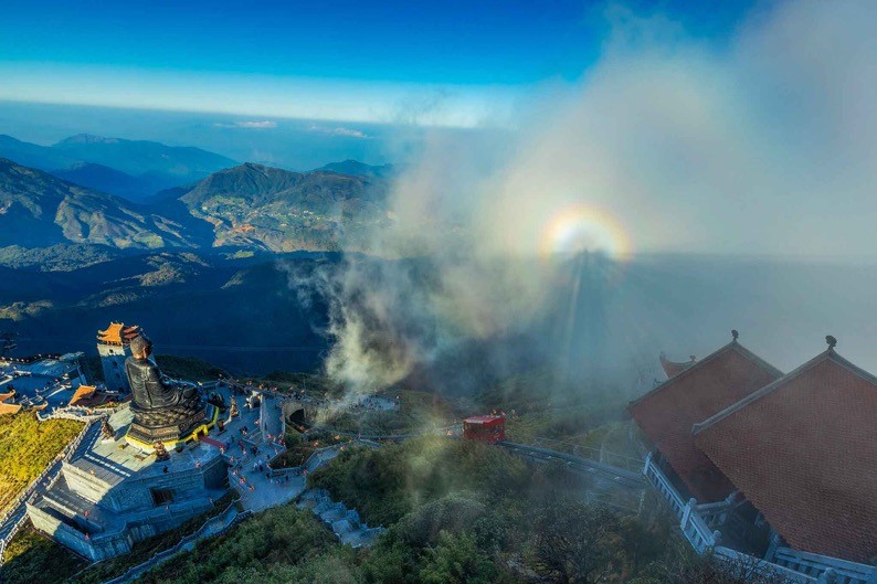 Đầu đông cũng là thời điểm du khách có cơ hội nhìn thấy hiện tượng phát quang trên khu vực đỉnh, ngay tại vị trí tượng Quan Thế Âm Bồ Tát hay Kim Sơn Bảo Thắng tự. Nhiều người cho rằng ai có may mắn nhìn thấy hiện tượng này khi đến cầu an tại quần thể tâm linh trên đỉnh Fansipan thì sẽ gặp dữ hoá lành, làm gì cũng suôn sẻ.