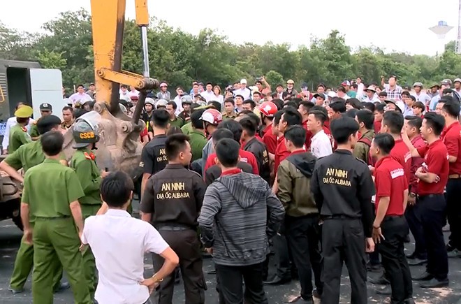 Đến ngày 13/6, khi đoàn cưỡng chế của UBND xã Tóc Tiên tiến hành cưỡng chế khu đất vi phạm thì các nhân viên của địa ốc Alibaba đến bao vây làm khó đoàn cưỡng chế.