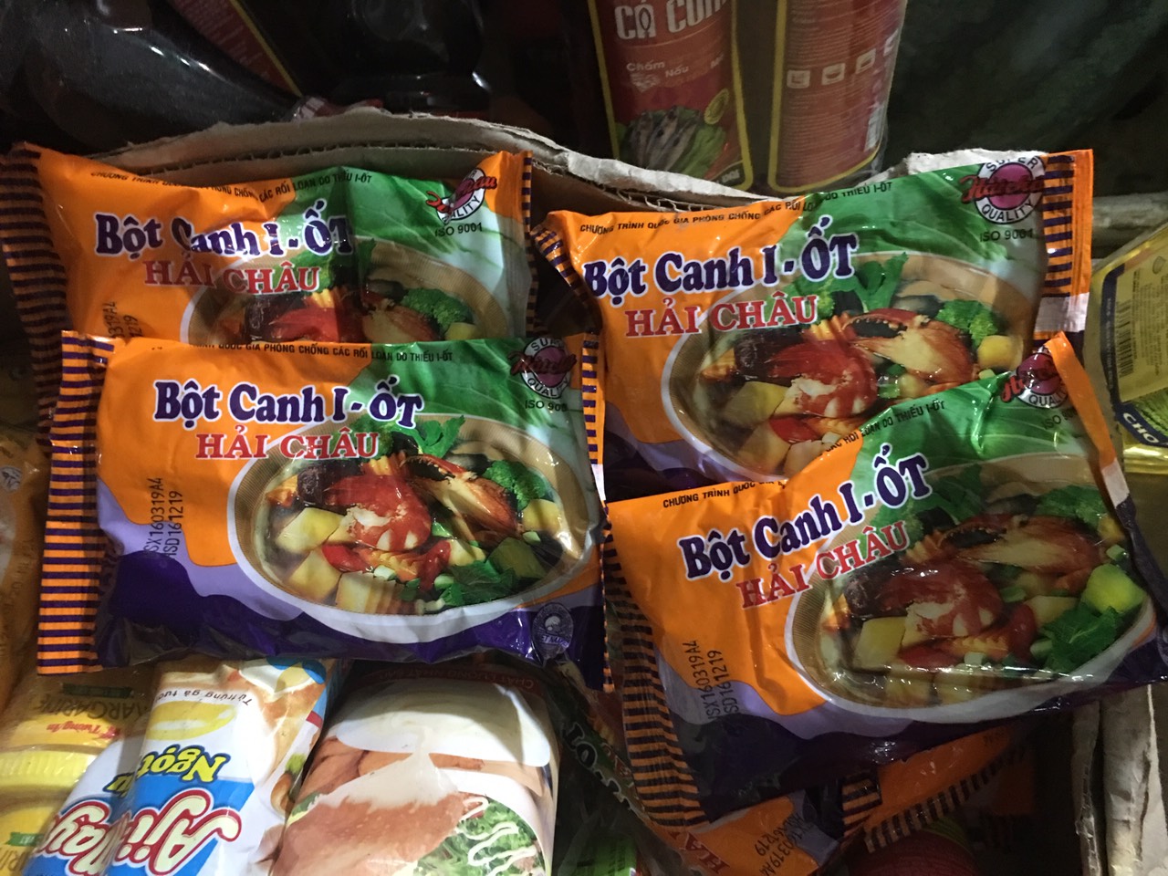 | Nhãn hiệu Bột canh I-ốt Hải Châu của Công ty Bánh kẹo Hải Châu vẫn được bày bán khắp các cửa hàng, bách hóa, siêu thị... |