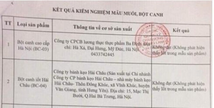 Sau khi kiểm tra, thực hiện kiểm nghiệm đúng quy trình, Chi cục Quản lý chất lượng Nông Lâm và Thủy sản đã làm rất đúng là phát đi thông báo đến các cơ quan chức năng ở các tỉnh, thành về việc chất lượng “có vấn đề”, bột canh i-ốt Hải Châu và một số sản phẩm muối, bột canh khác ghi trên bao bì có hàm lượng i-ốt nhưng không đạt, thậm chí bột canh tên i-ốt Hải Châu ghi hàm lượng i-ốt rõ ràng trên bao bì nhưng không hề có i-ốt ở sản phẩm bày bán ra thị trường…
