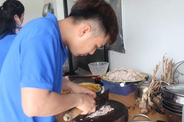 "Thực hiện chương trình, cán bộ, đoàn viên thanh niên, thành viên của CLB Hành trình Nhiệt huyết, Đoàn thanh niên Công an huyện Sóc Sơn và Đoàn Thanh niên Bệnh viên Đa khoa Sóc Sơn sắp xếp địa điểm tổ chức nấu, thống kê số lượng bệnh nhân khó khăn và phát các phần cơm đến tận tay bệnh nhân. Để có những suất cơm ngon, đảm bảo dinh dưỡng cho các bệnh nhân, mỗi suất ăn đều được lên thực đơn và chế biến với quy trình đảm bảo vệ sinh an toàn thực phẩm " Anh Vũ chia sẻ thêm.